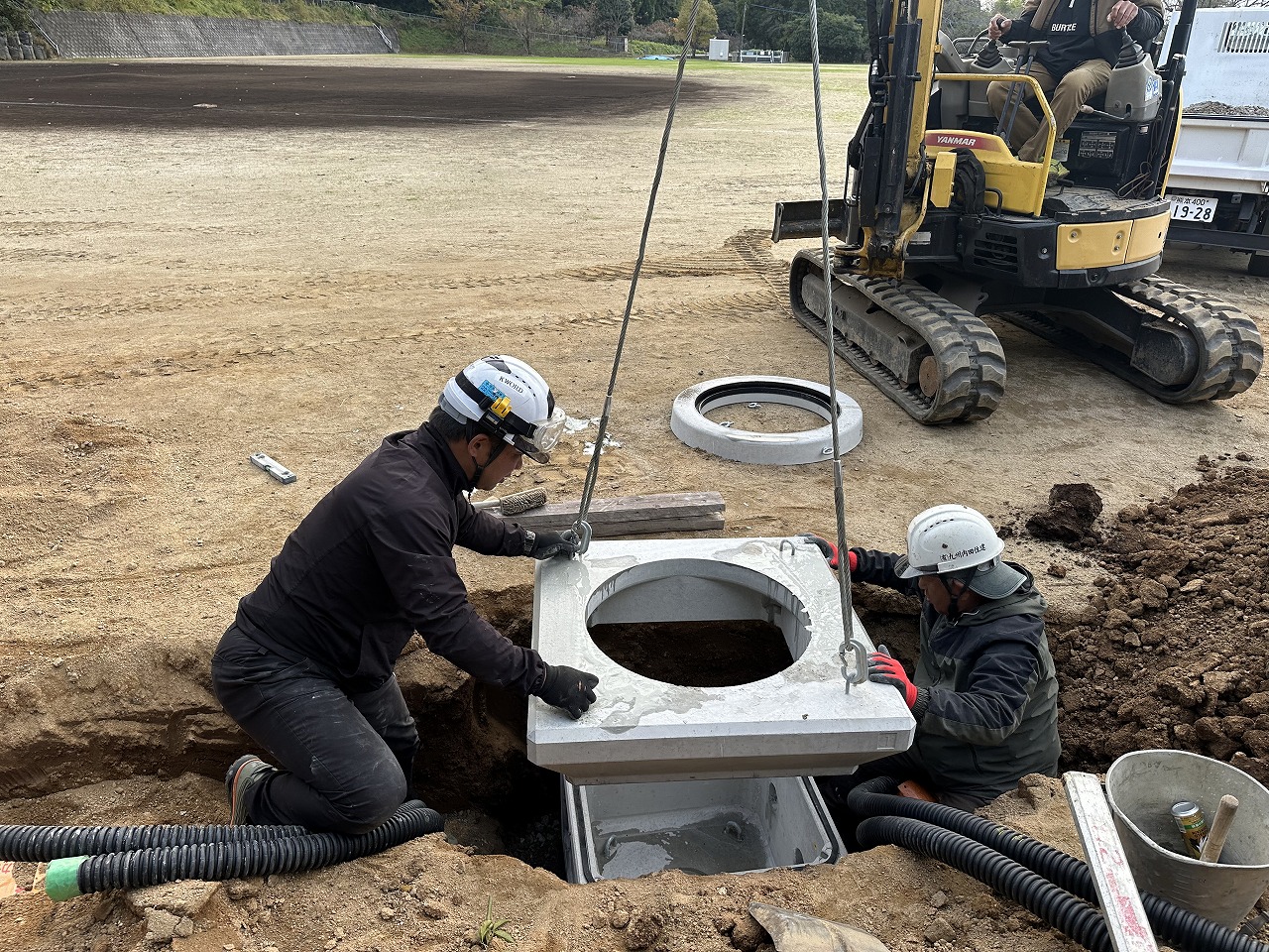 グラウンド内にある既存トイレが経年劣化の為、解体後トイレ新築工事着工中です。
